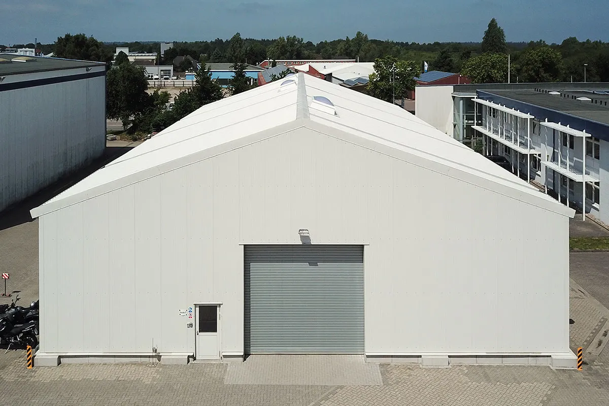 Wozu viel Zeit und Geld in einen Festbau investieren? Wir liefern Ihnen die für Ihren Bedarf passende Fertighalle – schnell, günstig und in hoher Qualität. Aufgrund vielfältiger Ausstattungsmöglichkeiten sind unsere Fertighallen für die unterschiedlichsten Anwendungsbereiche ideal geeignet – von der einfachen Lagerhalle ohne Isolierung bis zum hellen, ästhetisch ansprechenden und hervorragend gedämmten Arbeits- und Ausstellungsraum.