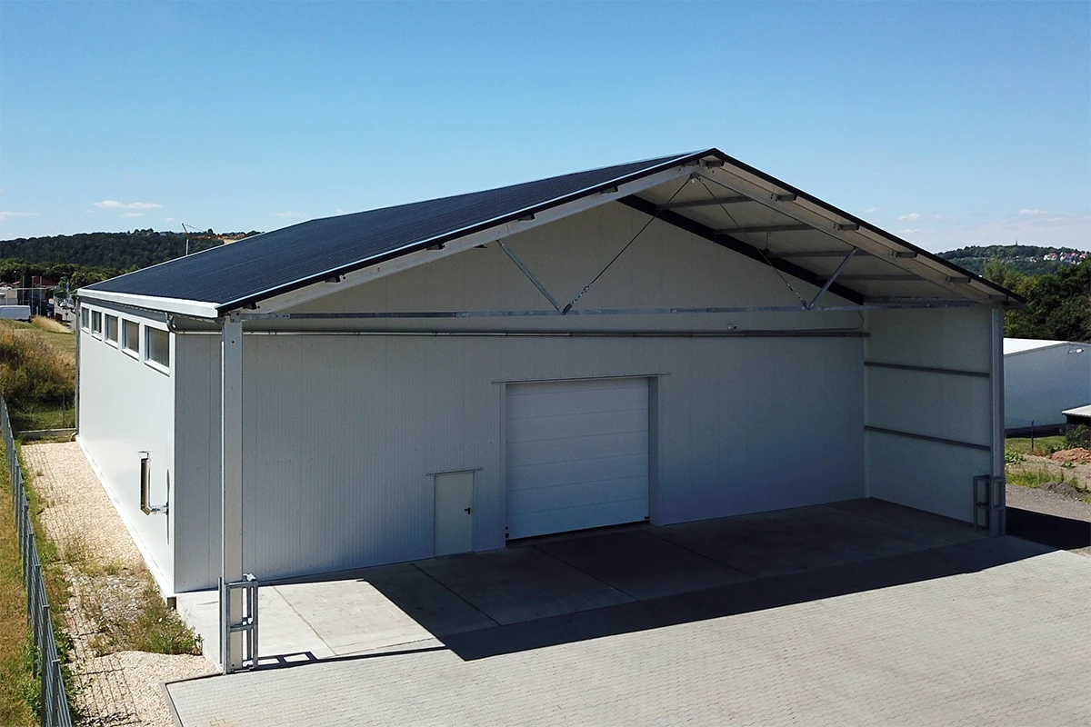 Ja, Leichtbauhallen verfügen über ein festes Dach aus Trapezblech oder Sandwichpaneel, auf dem eine Photovoltaikanlage installiert werden kann. Die entsprechende Zusatzlast muss jedoch bereits in der Planungsphase von unseren Statikern einberechnet werden.