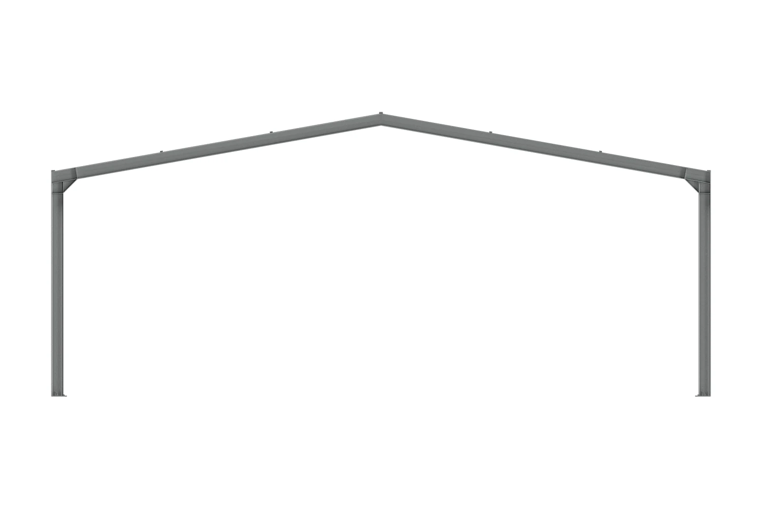 10° bzw. 5° Dachneigung (Standard); Stahlprofile verzinkt; die Profilquerschnitte variieren je nach Spannweite, Schnee- und Windlast, üblich ist z.B. IPE 240 mit 240 × 120 mm, die Materialstärke ist entsprechend ca. 6,2 bis 9,8 mm