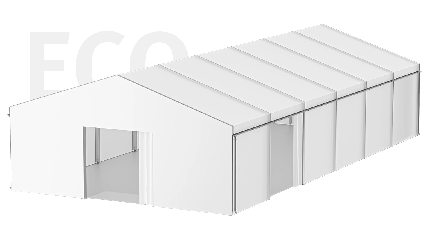 Die ECO-line Zelthalle ist die clevere Einstiegslösung für flexible Überdachungen. Leichte Aluminium-Stahl-Konstruktion, lichtdurchlässige PVC-Plane und schneller Aufbau machen Sie ideal für temporäre Lagerflächen mit minimalen Budget.